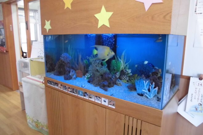 五日市にじこども園様に設置させて頂いたオーバーフロー水槽に大型ヤッコのクイーンエンゼルを追加投入しました。